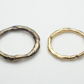 個人作品の背景(結婚指輪と重なる所もあるが)には、製法や意匠を退行させる意図がある。プリミティブ(原始的)な物事に人の本質を見るから、暮らし方も求める物事も次第にそっちへ向かってる。造る私や私の暮らし方、想いに触れられる事も大事にしたいし、商業的なモノづくりでは実現できない一点物。願わくば作品を通して感じて貰いたい。